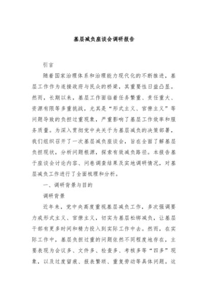 / 【七哥公文】2024年:基层减负座谈会调研报告+更多免费公文+VX:QiGeGongWen2024