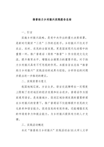 / 【七哥公文】2024年:推普助力乡村振兴实践报告总结+更多免费公文+VX:QiGeGongWen2024