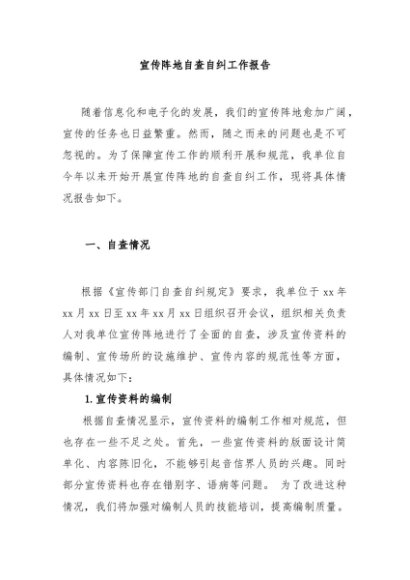 / 【七哥公文】2024年:宣传阵地自查自纠工作报告+更多免费公文+VX:QiGeGongWen2024
