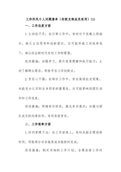 【七哥公文】2024年:工作作风个人问题清单(村级支部成员适用)(1)+更多免费公文+VX:QiGeGongWen2024