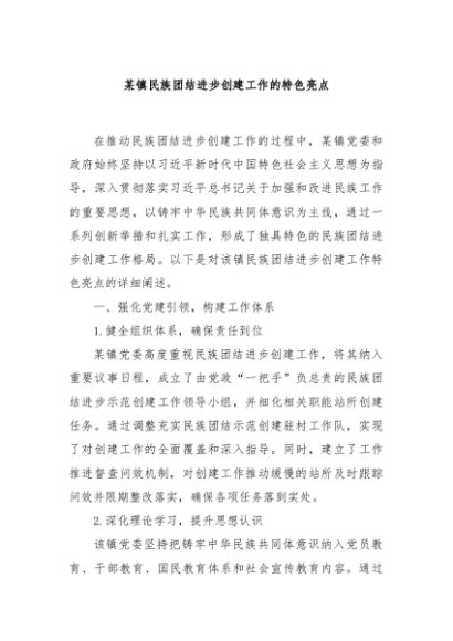 / 【七哥公文】2024年:某镇民族团结进步创建工作的特色亮点+更多免费公文+VX:QiGeGongWen2024