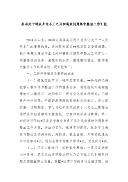 【七哥公文】2024年:某局关于群众身边不正之风和腐败问题集中整治工作汇报+更多免费公文+VX:QiGeGongWen2024