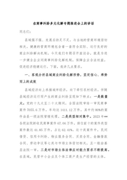 / 【七哥公文】2024年:在商事纠纷多元化解专题推进会上的讲话+更多免费公文+VX:QiGeGongWen2024