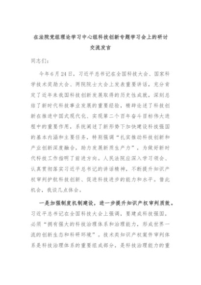 【七哥公文】2024年:在法院党组理论学习中心组科技创新专题学习会上的研讨交流发言+更多免费公文+VX:QiGeGongWen2024