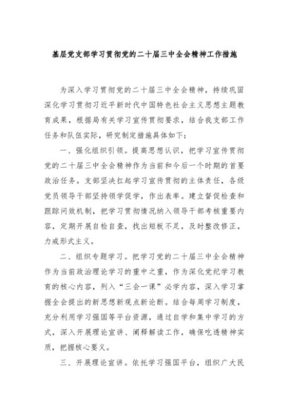 / 【七哥公文】2024年:基层党支部学习贯彻党的二十届三中全会精神工作措施+更多免费公文+VX:QiGeGongWen2024