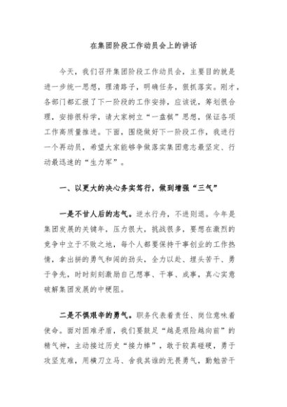 【七哥公文】2024年:在集团阶段工作动员会上的讲话+更多免费公文+VX:QiGeGongWen2024