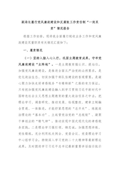 【七哥公文】2024年:副局长履行党风廉政建设和反腐败工作责任制“一岗双责”情况报告+更多免费公文+VX:QiGeGongWen2024