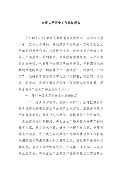 / 【七哥公文】2024年:全面从严治党工作总结报告+更多免费公文+VX:QiGeGongWen2024