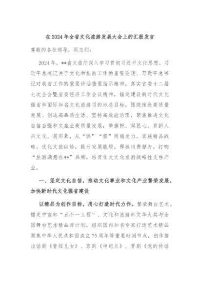 / 【七哥公文】2024年:在2024年全省文化旅游发展大会上的汇报发言+更多免费公文+VX:QiGeGongWen2024