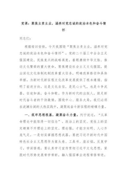 【七哥公文】2024年:党课:聚焦主责主业,涵养对党忠诚的政治本色和奋斗情怀+更多免费公文+VX:QiGeGongWen2024
