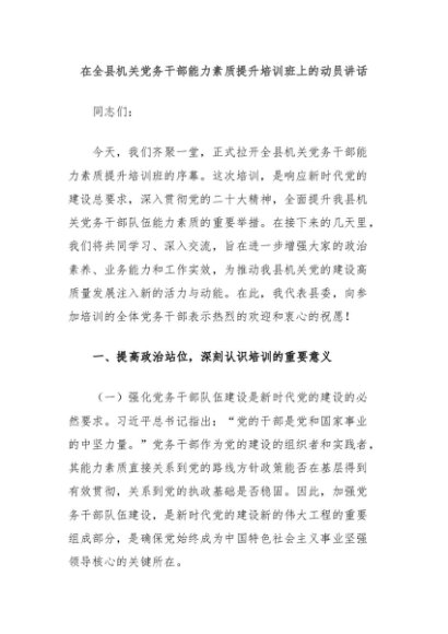 / 【七哥公文】2024年:在全县机关党务干部能力素质提升培训班上的动员讲话+更多免费公文+VX:QiGeGongWen2024