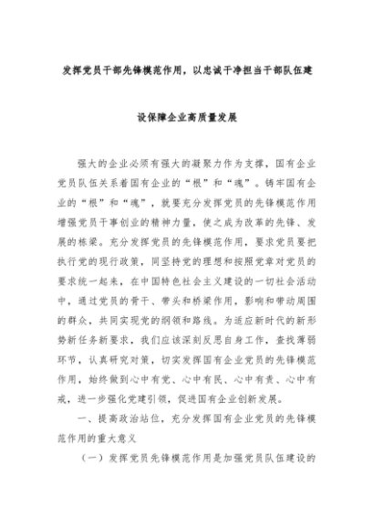 【七哥公文】2024年:发挥党员干部先锋模范作用,以忠诚干净担当干部队伍建设保障企业高质量发展+更多免费公文+VX:QiGeGongWen2024
