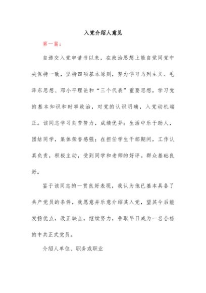 / 【七哥公文】2024年:入党介绍人意见+更多免费公文+VX:QiGeGongWen2024