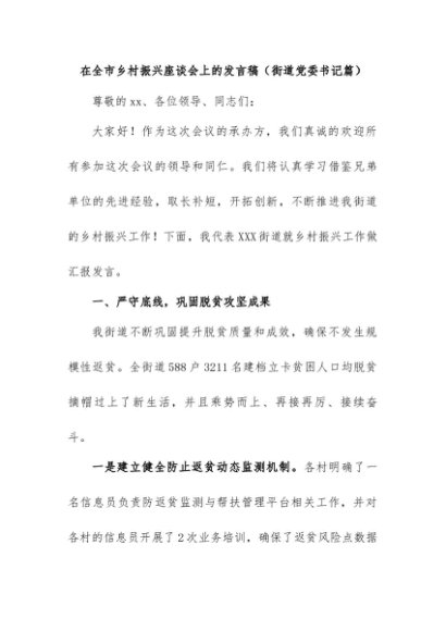 / 【七哥公文】2024年:在全市乡村振兴座谈会上的交流发言稿(村支书篇)+更多免费公文+VX:QiGeGongWen2024