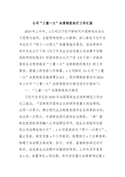 / 【七哥公文】2024年:公司“三重一大”决策制度执行工作汇报+更多免费公文+VX:QiGeGongWen2024