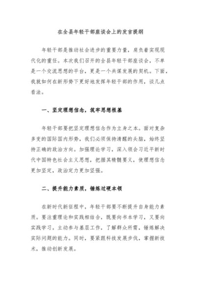 / 【七哥公文】2024年:在全县年轻干部座谈会上的发言提纲+更多免费公文+VX:QiGeGongWen2024