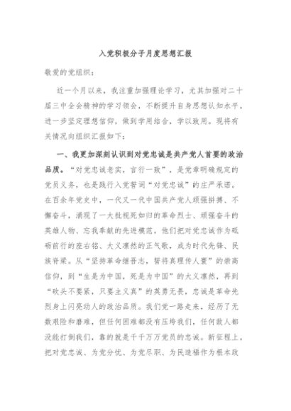 / 【七哥公文】2024年:入党积极分子月度思想汇报+更多免费公文+VX:QiGeGongWen2024