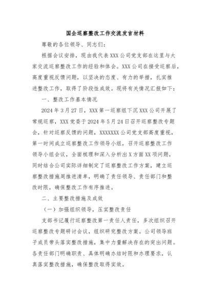 / 【七哥公文】2024年:国企巡察整改工作交流发言材料+更多免费公文+VX:QiGeGongWen2024