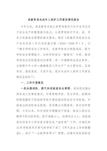 / 【七哥公文】2024年:县教育局未成年人保护工作落实情况报告+更多免费公文+VX:QiGeGongWen2024