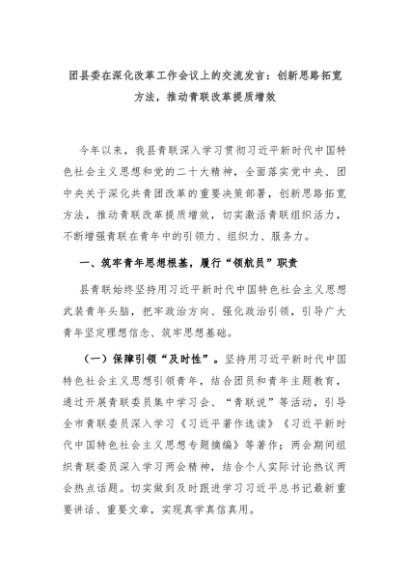 【七哥公文】2024年:团县委在深化改革工作会议上的交流发言:创新思路拓宽方法,推动青联改革提质增效+更多免费公文+VX:QiGeGongWen2024