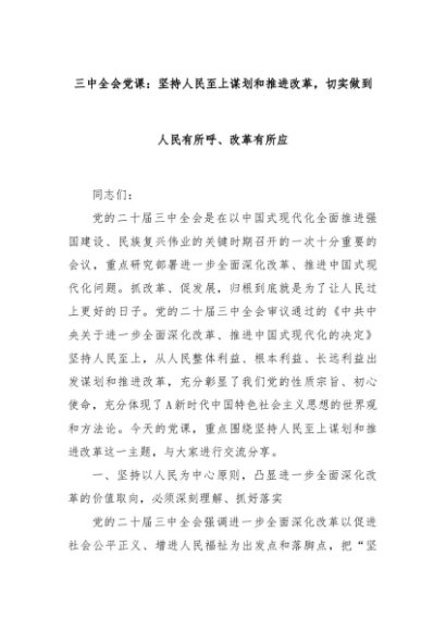 【七哥公文】2024年:三中全会党课:坚持人民至上谋划和推进改革,切实做到人民有所呼、改革有所应+更多免费公文+VX:QiGeGongWen2024