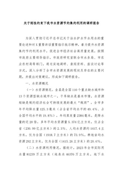/ 【七哥公文】2024年:关于刚性约束下我市水资源节约集约利用的调研报告+更多免费公文+VX:QiGeGongWen2024
