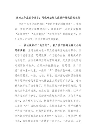 【七哥公文】2024年:党建工作座谈会发言:用党建法规之威提升管党治党之效+更多免费公文+VX:QiGeGongWen2024