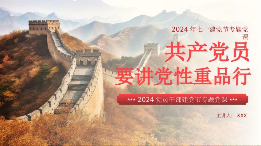 / 【七哥公文】2024年:党员要讲党性重品行七一建党节专题党课PPT+更多免费公文+VX:QiGeGongWen2024