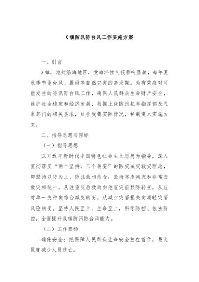 【七哥公文】2024年:X镇防汛防台风工作实施方案+更多免费公文+VX:QiGeGongWen2024