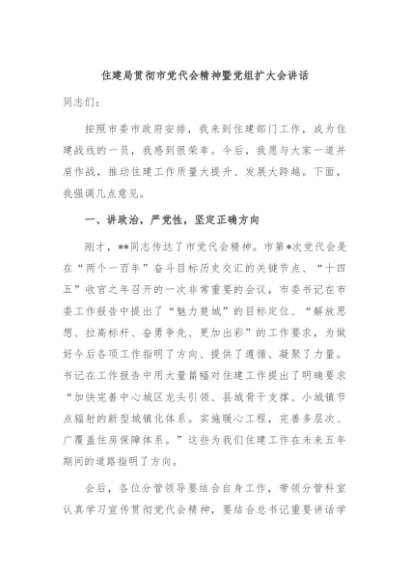/ 【七哥公文】2024年:住建局贯彻市党代会精神暨党组扩大会讲话+更多免费公文+VX:QiGeGongWen2024