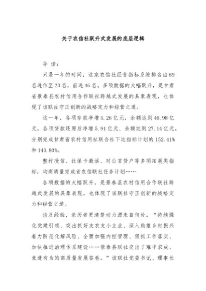 【七哥公文】2024年:关于农信社跃升式发展的底层逻辑+更多免费公文+VX:QiGeGongWen2024