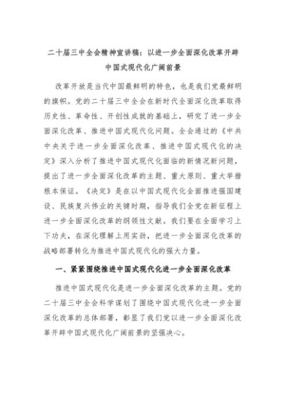 【七哥公文】2024年:二十届三中全会精神宣讲稿:以进一步全面深化改革开辟中国式现代化广阔前景+更多免费公文+VX:QiGeGongWen2024