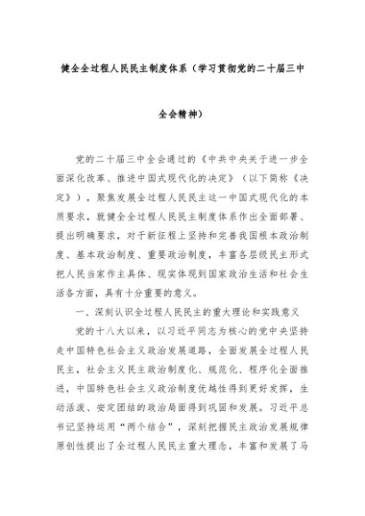 【七哥公文】2024年:健全全过程人民民主制度体系(学习贯彻党的二十届三中全会精神)+更多免费公文+VX:QiGeGongWen2024