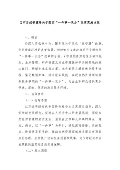 【七哥公文】2024年:X市自然资源局关于落实“一件事一次办”改革实施方案+更多免费公文+VX:QiGeGongWen2024
