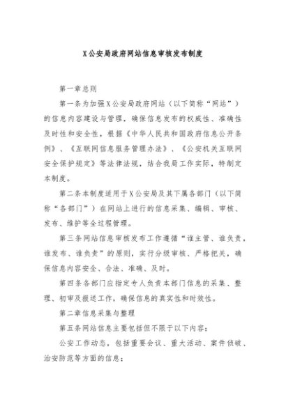【七哥公文】2024年:X公安局政府网站信息审核发布制度+更多免费公文+VX:QiGeGongWen2024