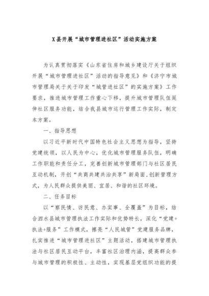 / 【七哥公文】2024年:X县开展“城市管理进社区”活动实施方案+更多免费公文+VX:QiGeGongWen2024
