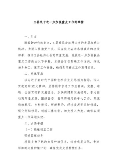 【七哥公文】2024年:X县关于进一步加强重点工作的举措+更多免费公文+VX:QiGeGongWen2024