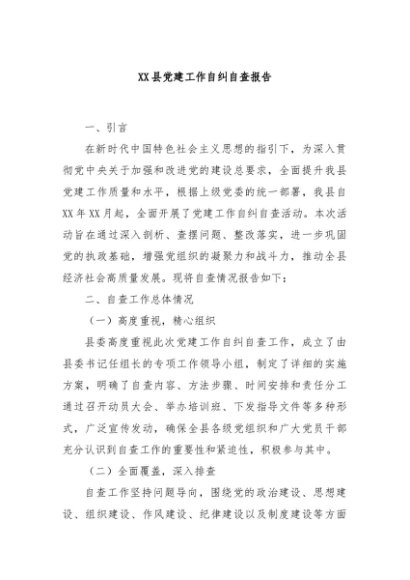 / 【七哥公文】2024年:XX县党建工作自纠自查报告+更多免费公文+VX:QiGeGongWen2024