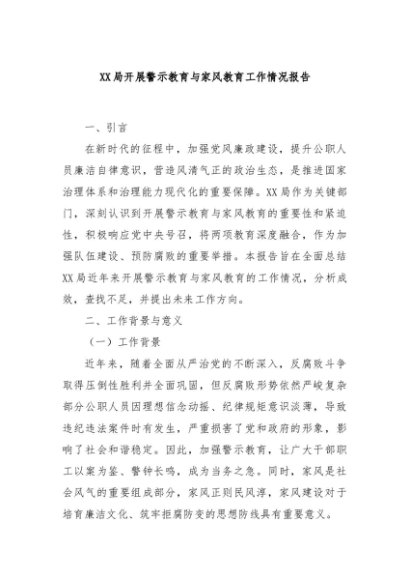 / 【七哥公文】2024年:XX局开展警示教育与家风教育工作情况报告+更多免费公文+VX:QiGeGongWen2024