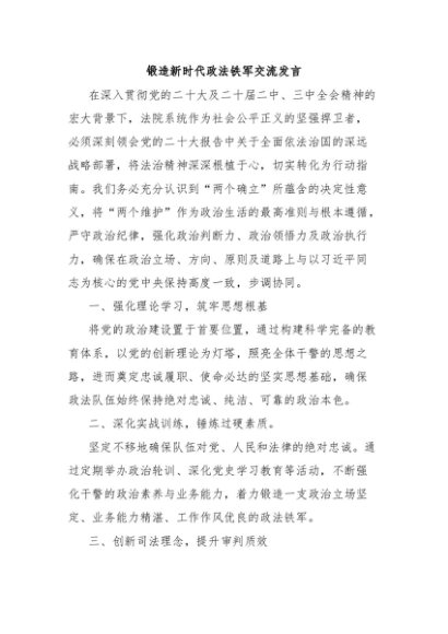 【七哥公文】2024年:锻造新时代政法铁军交流发言+更多免费公文+VX:QiGeGongWen2024