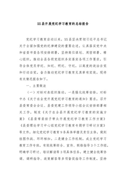 / 【七哥公文】2024年:XX县开展党纪学习教育的总结报告+更多免费公文+VX:QiGeGongWen2024