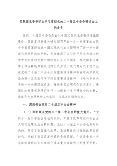 【七哥公文】2024年:某集团党委书记在学习贯彻党的二十届三中全会研讨会上的发言+更多免费公文+VX:QiGeGongWen2024