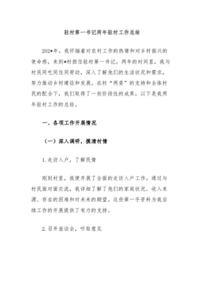 / 【七哥公文】2024年:驻村第一书记两年驻村工作总结+更多免费公文+VX:QiGeGongWen2024