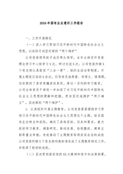 / 【七哥公文】2024年:2024年国有企业意识工作报告+更多免费公文+VX:QiGeGongWen2024