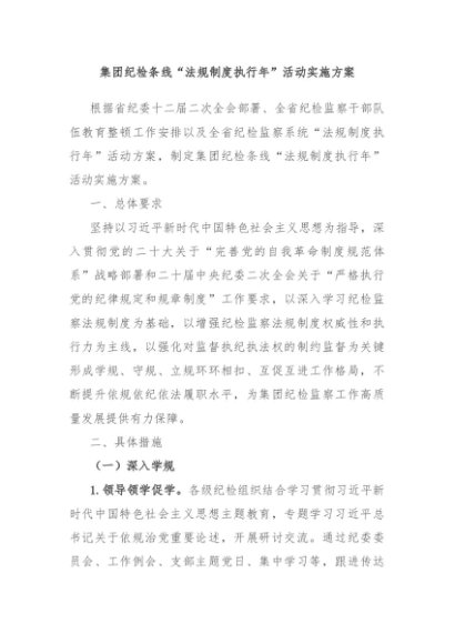 / 【七哥公文】2024年:集团纪检条线“法规制度执行年”活动实施方案+更多免费公文+VX:QiGeGongWen2024