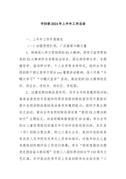 / 【七哥公文】2024年:市妇联2024年上半年工作总结+更多免费公文+VX:QiGeGongWen2024