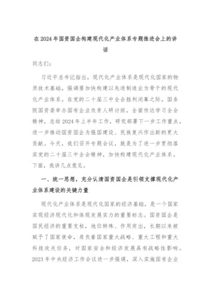 【七哥公文】2024年:在2024年国资国企构建现代化产业体系专题推进会上的讲话+更多免费公文+VX:QiGeGongWen2024