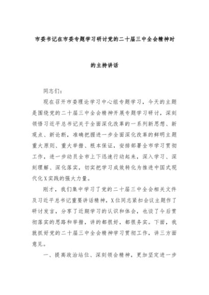 【七哥公文】2024年:市委书记在市委专题学习研讨党的二十届三中全会精神时的主持讲话+更多免费公文+VX:QiGeGongWen2024