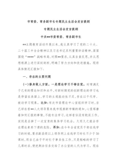/ 【七哥公文】2024年:市常委、常务副市长专题民主生活会发言提纲+更多免费公文+VX:QiGeGongWen2024
