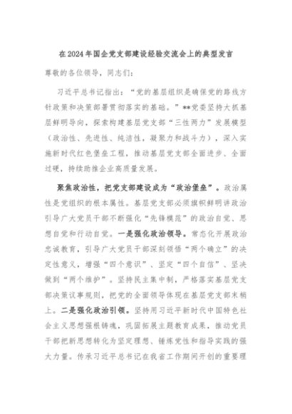 / 【七哥公文】2024年:在2024年国企党支部建设经验交流会上的典型发言+更多免费公文+VX:QiGeGongWen2024